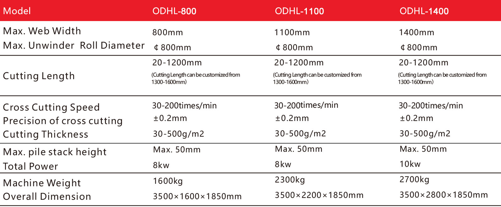 The machine is suitable for cross cutting big jumbo roll materials, such as paper, laminated paper, printed paper, adhesive sticker,non-woven fabric and plastic film, etc. The machine is widely apply to paper products processing industry, printing and packaging industry.
