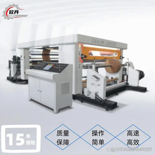 歐丹機(jī)械ODFC分切機(jī)———不干膠、薄膜、復(fù)合類材料,滑差軸收卷適合厚薄不均的材料,可帶自動(dòng)推料、自動(dòng)調(diào)刀等功能。